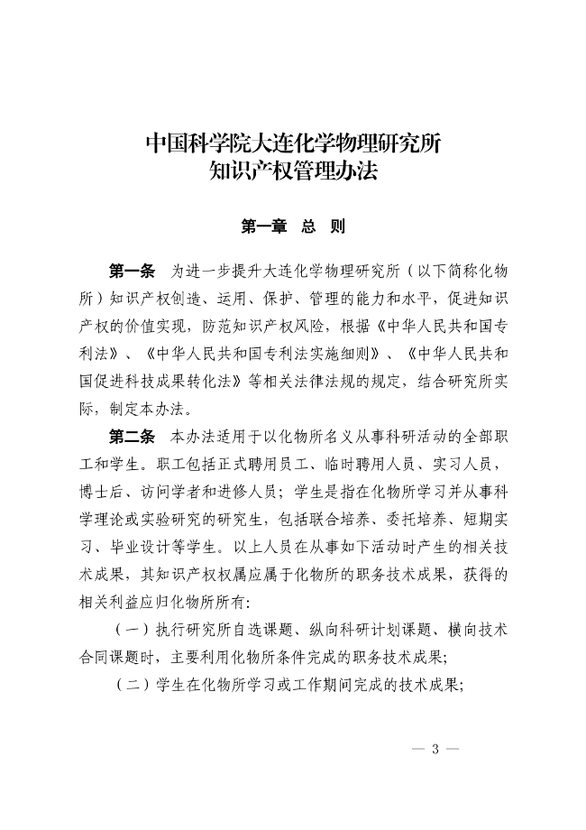 中(zhong)國(guo)科(ke)學(xué)院大(da)連化學(xué)物(wù)理(li)研究所知識産(chan)權筦(guan)理(li)辦(bàn)灋(fa)