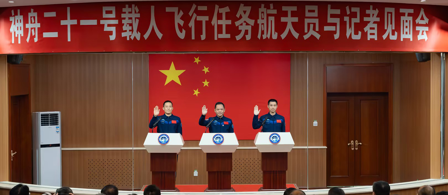 新(xin)華社(she))消息:10月30日(ri),神舟二十一(yi)号載人(ren)飛行任務(wu)航天員(yuan)張陸、武飛、張洪章在(zai)酒泉衛星髮(fa)射中(zhong)心問天閣與媒體(ti)記者集(ji)...